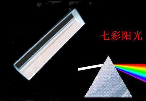 使用方法:将三棱镜放在太阳下或用一束白光,通过转动三棱镜使光照在一个平面上(三个平面哪一个都可以),在墙上就会出现彩虹般的七种颜色(红橙黄绿青蓝紫)。